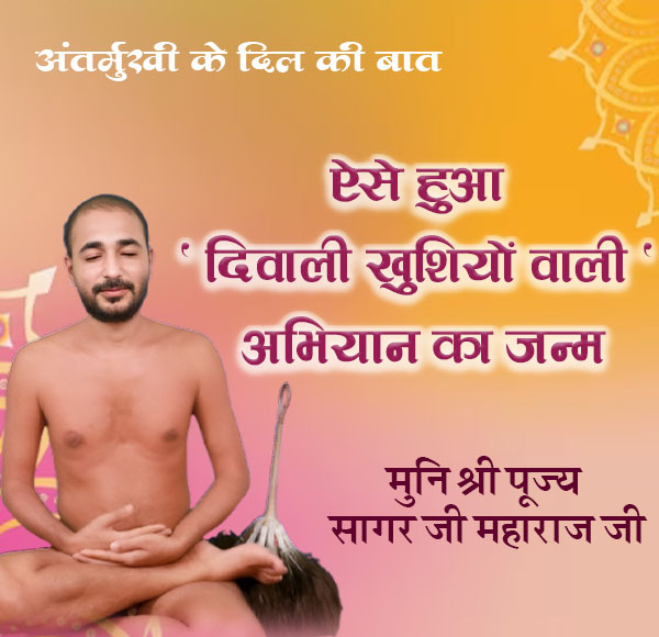 मेरा चातुर्मास उदयपुर में चल रहा है । प्रवचन और अन्य धार्मिक कार्यों में समय कैसे बीत जाता है, पता ही नहीं चलता लेकिन वो एक सितम्बर, 2019 की रात थी। बहुत देर से नींद नहीं आ रही थी। तभी मन में खयाल आया कि दिवाली नजदीक आ रही है। बीते कुछ वर्षों से हम दोहरी दिवाली अभियान चलाते रहे हैं, जिसमें गरीबों को मिठाई और कपड़े वितरित करने का कार्य होता था लेकिन यह बात मुझे हमेशा बेचैन करती थी कि केवल त्योहार पर कुछ चीजें देने मात्र से ही तो उनकी समस्या का स्थाई हल नहीं निकल सकता। मैं सोच रहा था कि उनकी गरीबी और परेशानी हमेशा के लिए दूर करने के लिए क्या हल निकाला जाए। यही सोचते-सोचते लिखना शुरू किया तो दिवाली खुशियों वाली अभियान का जन्म विचारों में हुआ, उसी रात दो बजे तक इस अभियान को मूर्त रूप देने का प्रयास करता रहा और सारी योजना बना डाली। मुझे लगा कि योजनाबद्ध तरीके से यह अभियान शुरू किया जाए तो इससे न केवल कुम्हार, बेरोजगार को काम मिलेगा बल्कि लोगों को प्राचीन संस्कृति की झलक भी दिखाई देगी।