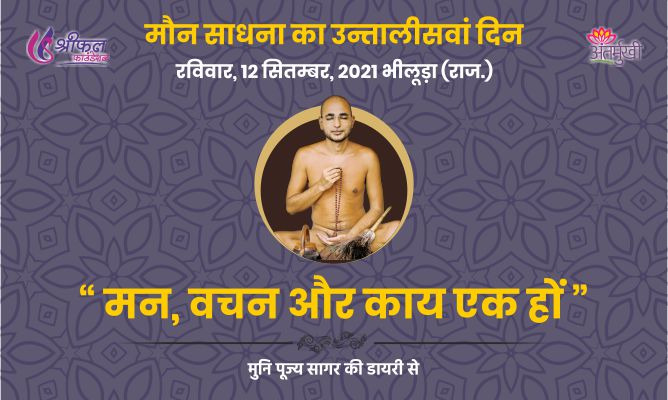 मौन साधना का 39वां दिन। मन, वचन और काय यह जब अलग- अलग काम करते हैं तो इंसान को भ्रमित करते हैं। ऐसा इंसान परिवार, समाज आदि के बीच अपना विश्वास और अस्तित्व समाप्त करता चला जाता है और खुद भी क्या सोचता है, क्या बोलता है और क्या करता है, उसका भी उसे पता नहीं चलता है। जब पता चलता है, तब तक उस पर विश्वास करने वाले इंसानों की संख्या धीरे- धीरे कम होती चली जाती है। विश्वास चले जाने के बाद वह कितना भी अच्छा चिंतन,मार्गदर्शन और कार्य क्यों ना कर ले, उस पर किसी को विश्वास नही होता। ऐसा इंसान समझ ही नहीं पाता कि क्या सही है और क्या गलत?