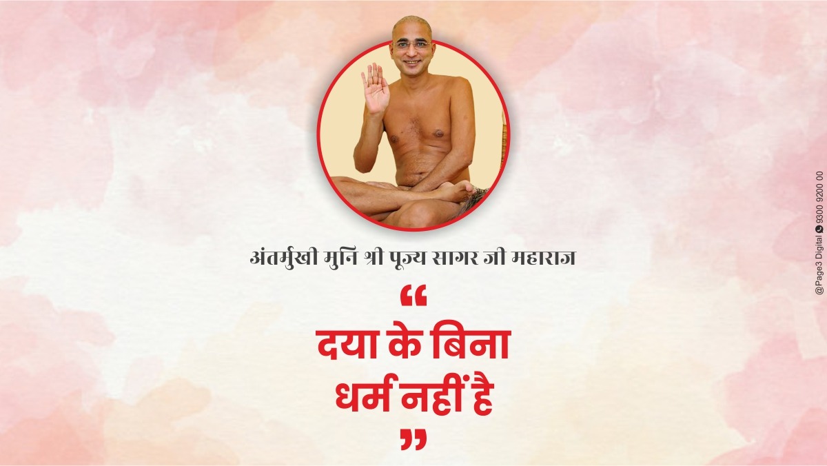 मुनि श्री ने कहा कि कभी किसी से वैर भाव मत रखना। वैर रखने से मानव रोगी बन जाता है। मन में हमेशा दया का भाव रखना। याद रखना कि दया के बिना धर्म नहीं होता है। घर में झाडू भी लगाना तो यह ध्यान रखना कि जीव जंतू ना मरें। दया का भाव, करूणा का भाव, प्रेम का भाव लाने के लिए उस राजकुमारी अंगशारा को याद कर लेना जिसे अजगर निगलने वाला था, लेकिन उसने अजगर के प्रति भी दया भाव रखा और उसे किसी को मारने नहीं दिया। उसकी दया का प्रभाव ऐसा था कि उसके शरीर के छूए हुए जल से लक्ष्मण की मूर्छा टूट गई थी। मुनि श्री ने कहा कि अपने आप को इतना दयावान बनाओ कि तुमको छूने वाले के रोग दूर हो जाएं। भिखारी घर आया और आपने उसे खाना खिला दिया। तो यह दया है कि, लेकिन सोचा कि इस खिलाने के बदले दो काम करा लूंगा तो यह दया नहीं लालच है। ऐसी दया नहीं रखनी है। यदि हम दया के बदले फल चाहते हैं तो ऐसी दया, करूणा, ऐसा वात्साल्य काम का नहीं है। दया करो तो निस्वार्थ करो। स्वार्थ के कारण की गई दया पाप का कारण बन सकती है। दया के पीछे कोई स्वार्थ नहीं होना चाहिए। स्वार्थहीन दया ना सिर्फ हमें निर्मल बनाती है, बल्कि हमारे सम्पर्क में आने वालोें को भी निर्मल बनाती है। दया को मन में धारण करो, तो मुनि बन जाआगे, कर्मो की निर्जरा हो जाएगी। थोडी भी दया की तो वह व्यर्थ नहीं जाएगी। यह ऐसा धन है कि जो ब्याज सहित आपको फल देगी। दया के साथ स्वार्थरूपी कर्ज मत लेना, वरना मूल भी जाएगा और ब्याज भी जाएगा। किसी जीव पर दया करते हो तो यह मत देखो कि वह जीव कौन है, दया तो सभी पर करनी चाहिए, दया तो प्राणी मात्र पर करनी चाहिए। दयावान व्यक्ति का प्रभाव ही इतना होता है कि वह पूरे वातावरण को निर्मल बना देता है। दया भाव रखोगे तो क्रूर से क्रूर प्राणी भी आपके सामने नतमस्तक हो जाएगा।