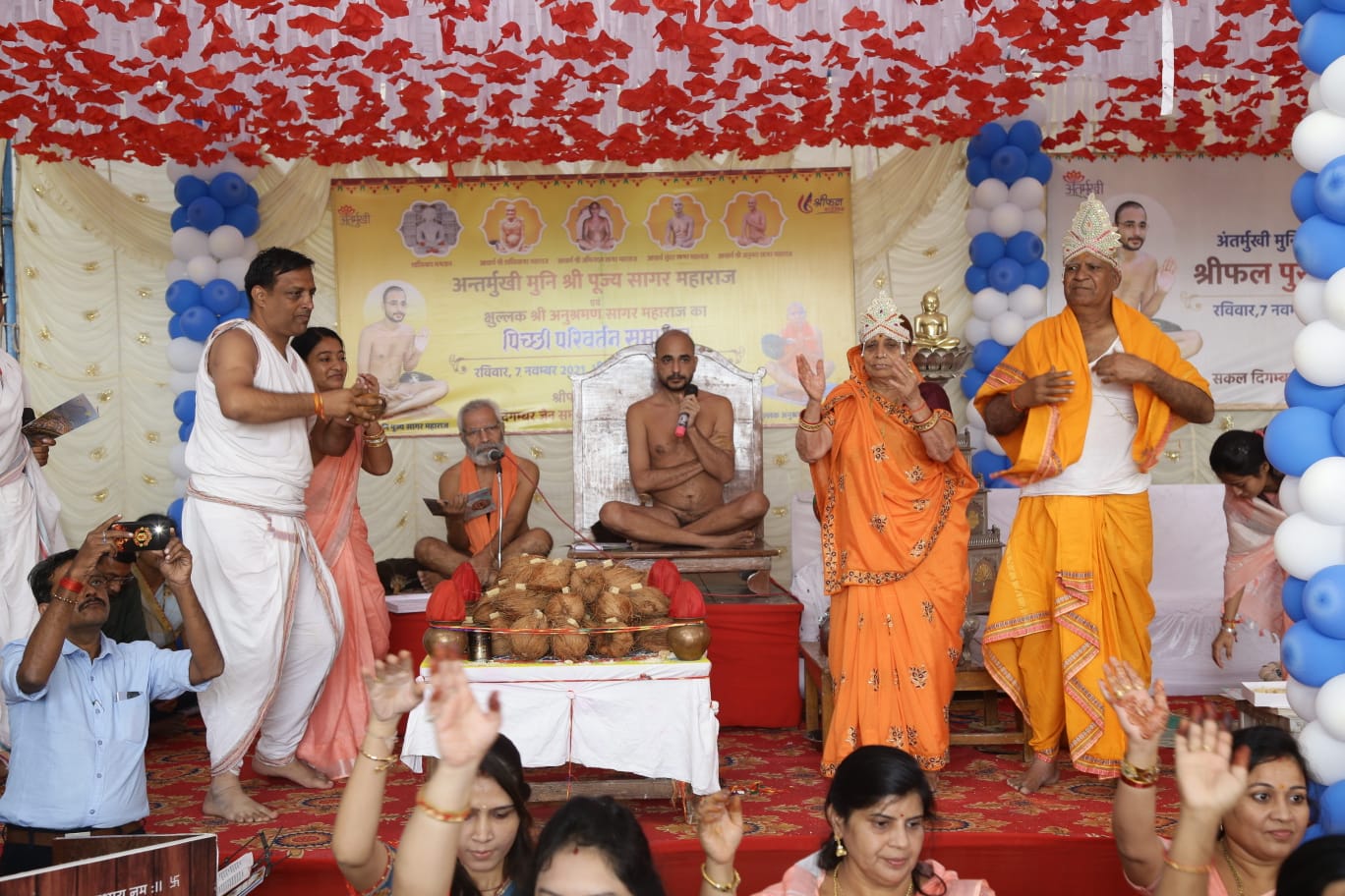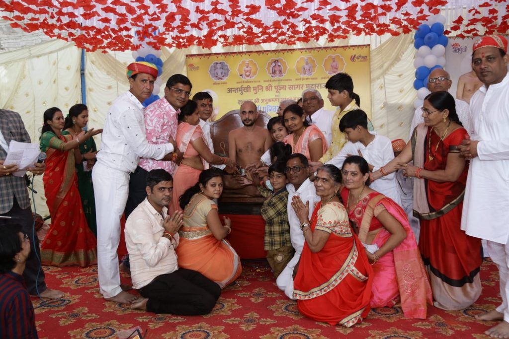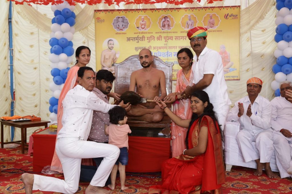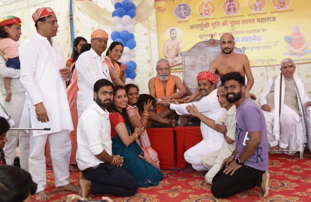 : भीलूड़ा गांव में अंतर्मुखी मुनि पूज्य सागर महाराज एवं क्षुल्लक अनुश्रमण सागर महाराज का पिच्छी परिवर्तन समारोह