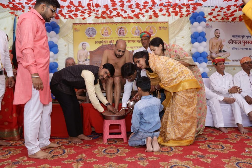 : महाराज का किया पाद प्रक्षालन, पिच्छी परिवर्तन के पहले किया भद्रबाहु स्वामी का विधान