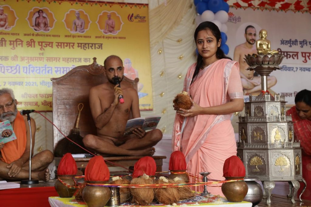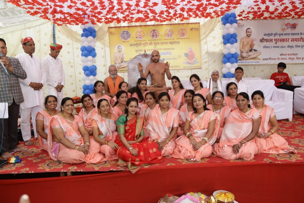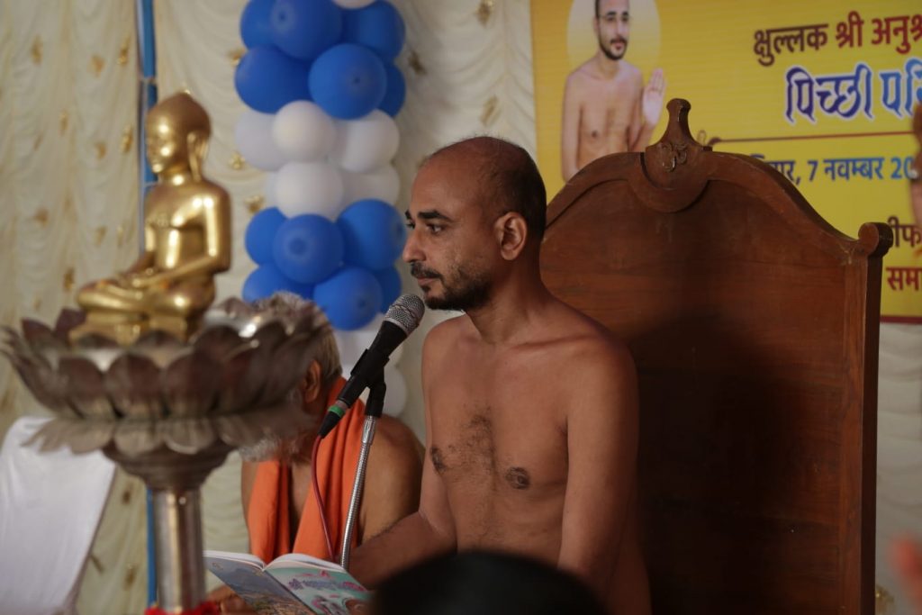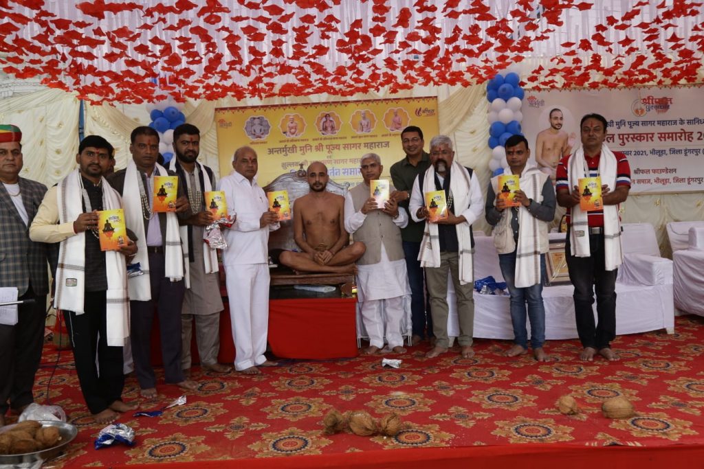 भीलूड़ा/ डूंगरपुर। अंतर्मुखी मुनि श्री पूज्य सागर महाराज एवं क्षुल्लक अनुश्रमण सागर महाराज का पिच्छी परिवर्तन समारोह भीलूड़ा गांव के श्री शांतिनाथ दिगम्बर जैन मंदिर परिसर में हुआ। कार्यक्रम का मंगलाचरण पंडित सुमित जैन ने किया। अंतर्मुखी ग्रुप और शांतिनाथ ग्रुप की बालिकाओं ने नृत्य किया। सर्वप्रथम भीलूडा जैन समाज के अध्यक्ष अरविंद शाह ने अतिथियों का स्वागत किया। अंतर्मुखी मुनि पूज्य सागर जी महाराज का पाद पक्षालन का जयपुर से आए पत्रकार तरुण लाल चंद जैन, अदिति जैन ने किया। क्षुल्लक अनुश्रवण महाराज का पाद पक्षालन का लाभ हितेश भरड़ा परिवार ने लिया। अंतर्मुखी मुनि पूज्य सागर महाराज को कमंडल भेंट करने का लाभ प्रेरणा शाह व अनीता जैन सागवाड़ा को मिला । अंतर्मुखी मुनि पूज्य सागर महाराज जी को पिच्छी भेट करने का लाभ प्रतिभा अशोक जी टूकावत परिवार को मिला। मुनि की पुरानी पिच्छी चेतना हितेश भरडा परिवार को मिली। क्षुल्लक अनुश्रवण सागर काे पिच्छी भेंट करने का लाभ धार्मिक श्रीफल महिला परिवार भीलूडा को प्राप्त हुआ। पुरानी पिच्छी कमलेश शाह परिवार को मिली। पूज्य सागर महाराज काे शास्त्र भेंट करने का लाभ नितिन जैन जावद परिवार को मिला । क्षुल्लक अनुश्रमण सागर महराज को शास्त्र भेट और वस्त्र भेट करने का लाभ रमण लाल टूकावत परिवार को मिला। पिच्छी परिवर्तन के पहले भद्रबाहु स्वामी विधान किया गया। इस विधान में 64 अर्घ्य भद्रबाहु स्वामी को समर्पित किए गए। विधान के सौधर्म इंद्र चेतनलाल जैन थे। विधान से पहले भगवान शांतिनाथ का पंचामृत अभिषेक किया गया। तुष्टि जैन ने बताया कि धार्मिक श्रीफल परिवार और धार्मिक श्रीफल महिला परिवार का गठन किया गया विधिवद शपद ग्रहण आने वाले समय मे किया जाएगा। श्रीफल सर्वश्रेष्ठ परिवार पुरस्कार भीलूड़ा गांव के प्रतिभा अशोक जैन व चंदनबाला हितेश जैन काे दिया गया।