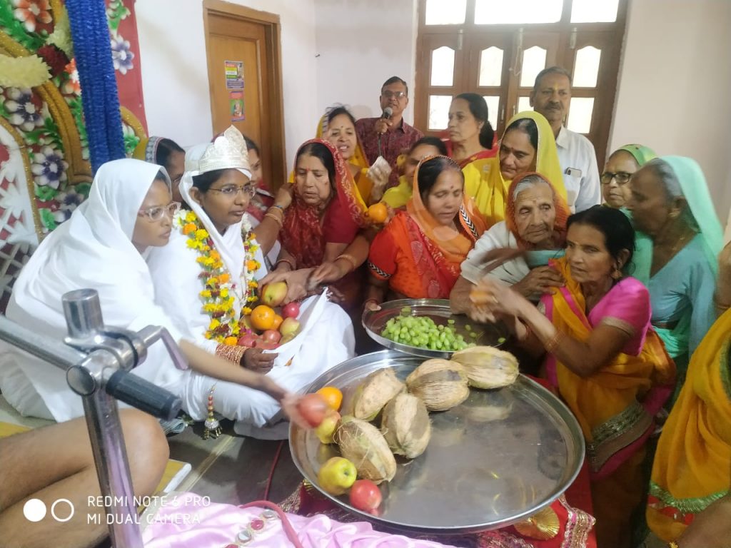 उदयपुर। अंतर्मुखी मुनि पूज्य सागर महाराज के सान्निध्य में पहाड़ा दिगंबर जैन मंदिर में दीक्षार्थी मंजू दीदी की गोद भराई का क्रार्यक्रम आयोजित किया गया। ब्र. मंजू दीदी की दीक्षा 21 फरवरी को हुमड़ भवन, उदयपुर में आचार्य विभव सागर महाराज द्वारा दी जाएगी। दीक्षा कार्यक्रम आचार्य सुंदर सागर महाराज के सान्निध्य में होगा। इस अवसर पर अन्तर्मुखी मुनि पूज्य सागर महाराज ने कहा कि दीक्षा लेने के भाव पुण्य आत्मा के ही होते हैं। इस दीक्षा की अनुमोदना करना भी पुण्य बंध का जरण है। निरंतर साधु सेवा करते रहेंगे तभी जैन धर्म का अस्तित्व बचा रहेगा। दीदी को भी बहुत आशीर्वाद है कि वह अपनी साधन और त्याग के मार्ग पर निरंतर बढ़ते जाएं। इस अवसर पर समाज के आदि लोग उपस्थित थे। महिला मंडल द्वारा भजन गान किया गया।